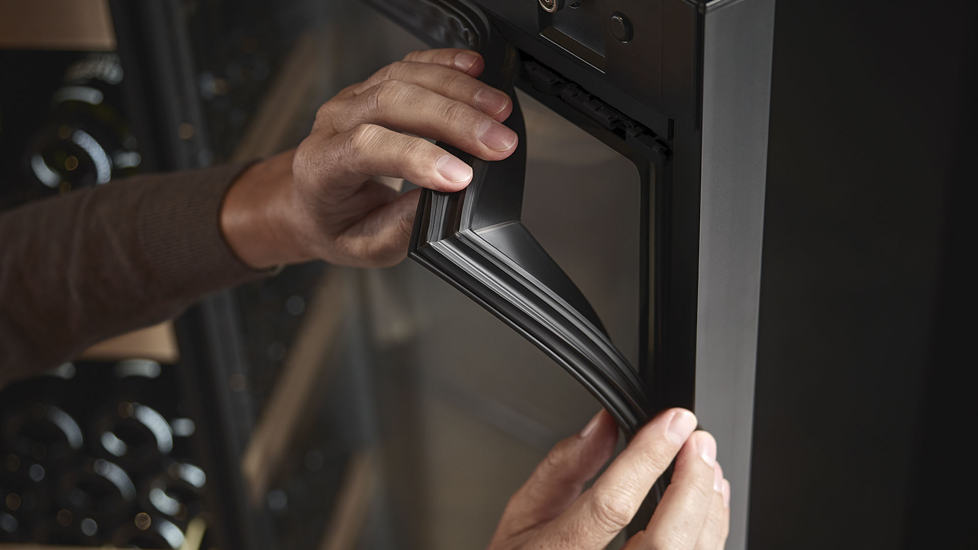 Fiecare detaliu respectă cele mai înalte standarde, iar garnitura uşii nu face excepţie. Asigură etanșeitatea permanentă a ușii, pentru condiții de temperare optime întotdeauna. Dacă trebuie să fie înlocuită, puteţi face acest lucru cu uşurinţă în doar câţiva paşi simpli. Aceasta înseamnă că vitrina dumneavoastră de temperare a vinurilor va fi întotdeauna impecabilă și curată.
