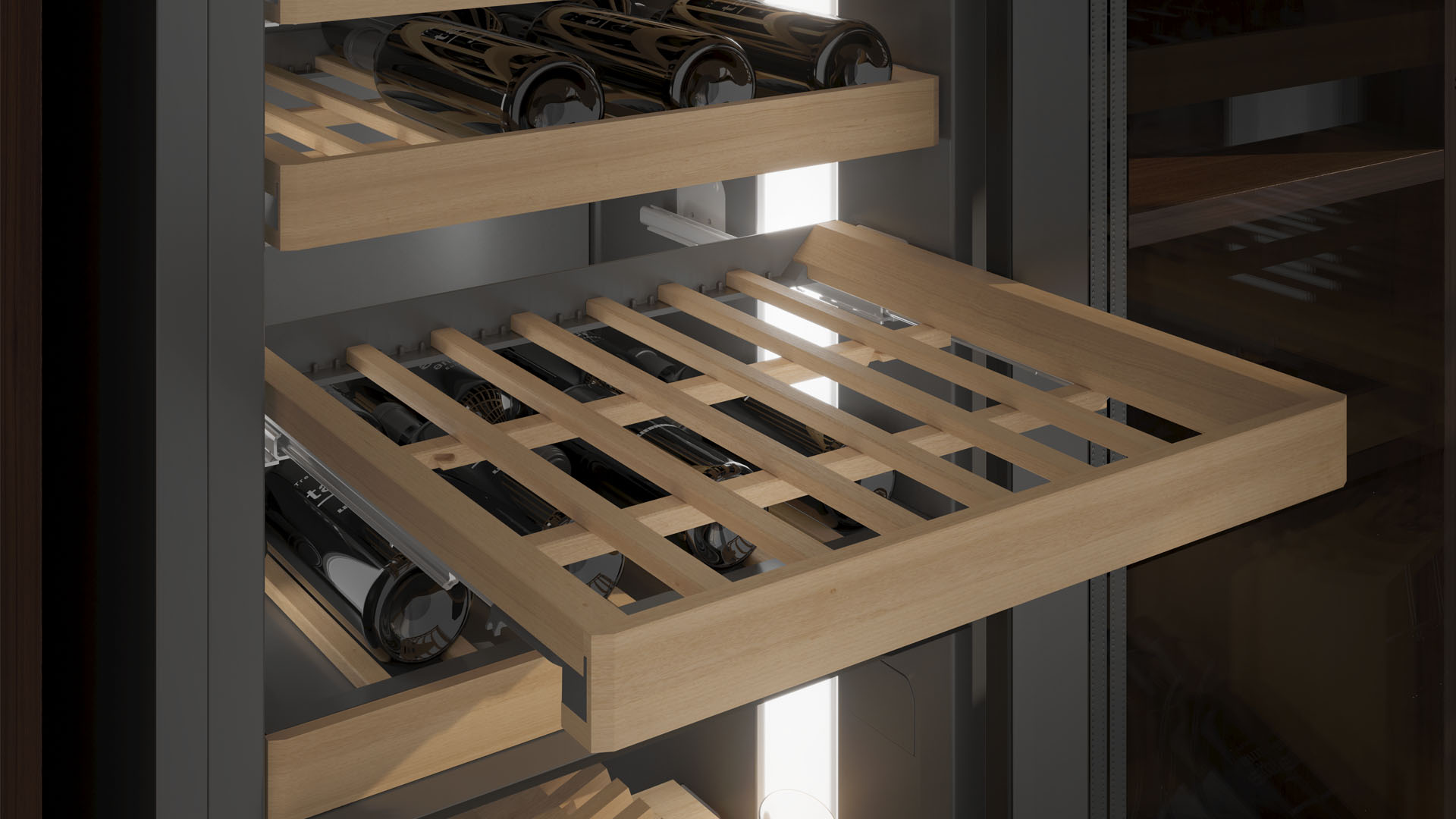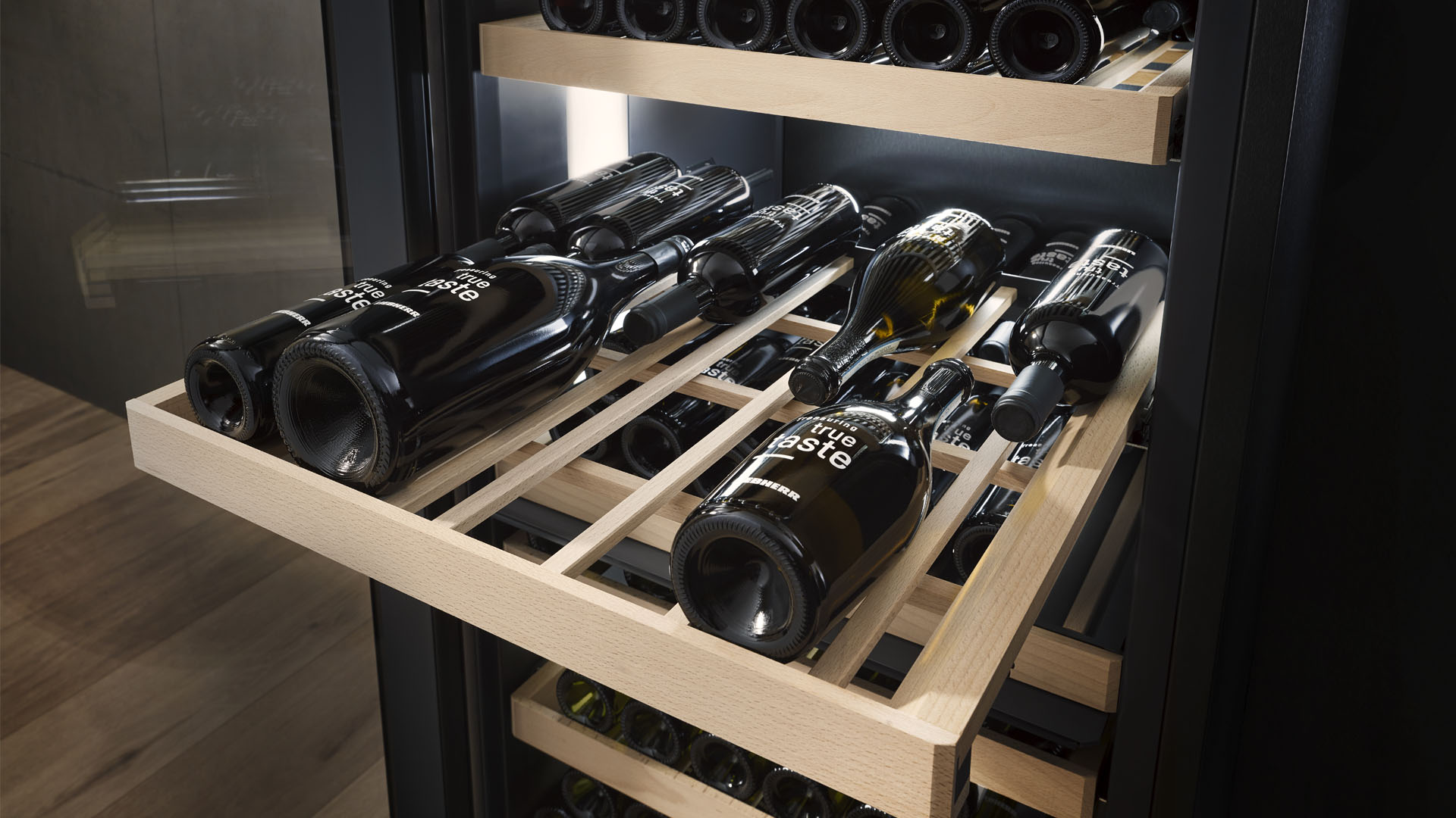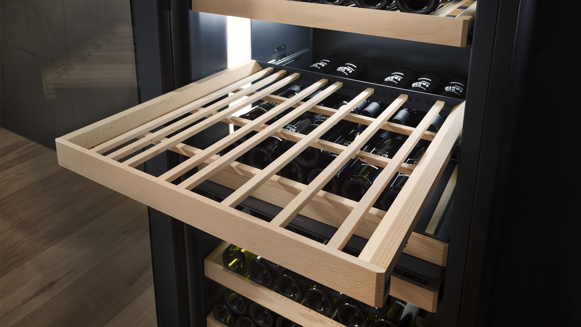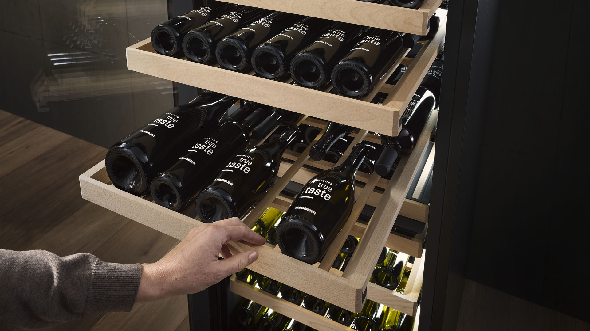 Capacitate maximă. O vitrină de temperare a vinurilor Liebherr facilitează și organizarea unei colecții de vinuri în creștere. Pentru a profita din plin de capacitatea sa, interiorul a fost conceput astfel încât sticlele de vin să poată fi depozitate gât la gât pe rafturile din lemn. Aceasta înseamnă că există mult spaţiu chiar şi pentru stocurile de vin în continuă creştere. Așa că nu ezitați să continuați să colectați.