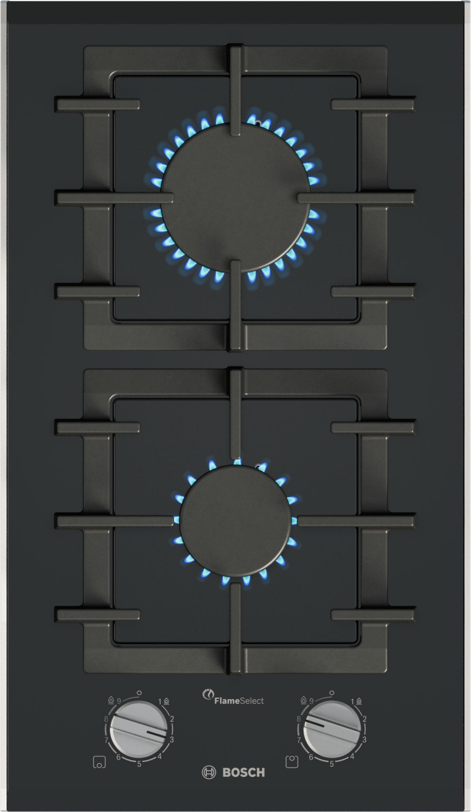Seria 8, Plită pe gaz, Domino, 30 cm, Vitroceramică, Negru
