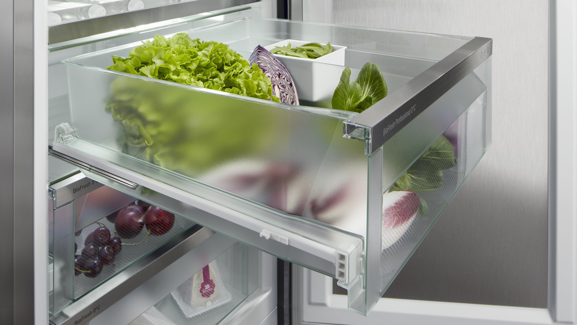Sertarul BioFresh Professional oferă alimentelor un plus de prospețime pentru o durată de depozitare mai lungă - inclusiv efectul wow: Datorită HydroBreeze, o peliculă de apă rece acoperă fructele și legumele ca un balsam protector. În combinație cu o temperatură de puțin peste 0 °C și o umiditate ridicată, fructele și legumele neambalate se simt ca acasă.