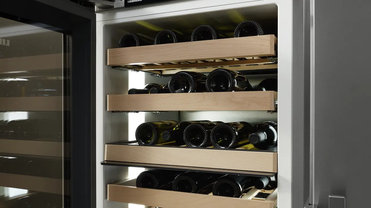 Vinul are nevoie de pace și liniște. De aceea, compartimentul de temperare a vinurilor garantează o păstrare delicată cu ajutorul compresoarelor deosebit de silențioase special dezvoltate de Liebherr și al rafturilor stabile din lemn masiv de fag. Acest lucru îi permite vinului să se maturizeze în linişte şi netulburat.